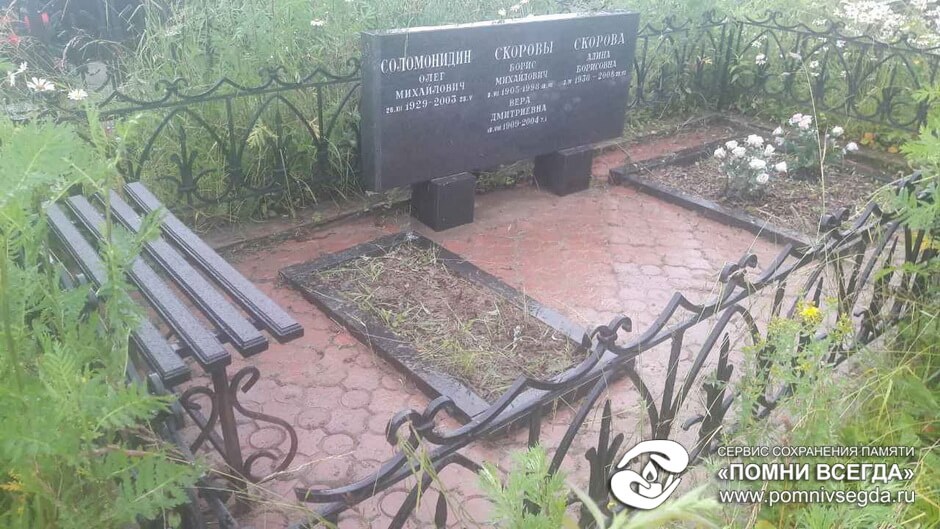 По ходу уборки мы покрасили лавочку, удалили все сорняки. Протёрли оградку и памятник. Однако в самом конце работы нас прервал дождь, который не дал аккуратно смести оставшуюся на плитке землю.